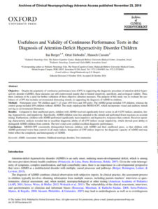 DEHB Tanısında Sürekli Performans Testlerinin Kullanışlılığı ve Geçerliliği – Norm Çalışması
