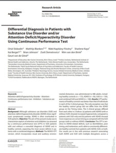 Sürekli Performans Testi Kullanılarak Madde Kullanım Bozukluklarına ve/veya Dikkat Eksikliği ve Hiperaktivite Bozukluğuna Sahip Olan Hastaların Birbirinden Ayırt Edilmesi